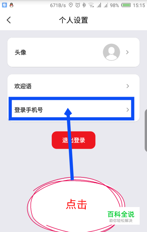 在个人设置界面,点击最下面的登录手机号选项,可以修改手机号。如图所示