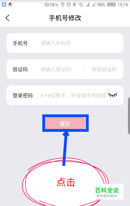 打开手机号修改界面,输入要修改的手机号,点击获取验证码,输入登录密码,点击提交。如图所示