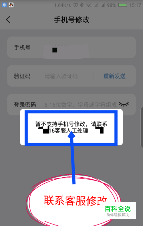 如果点击验证码,弹出提示窗口,不支持手机号修改,可以根据提示,联系人工客服处理。如图所示