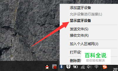 找到蓝牙图标,单击或右键。