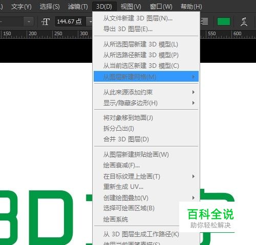 第一步:选中文字图层,点击3D菜单都不可用,点击文字菜单>创建3D文字(D)也不管用(3D功能需要GPU支持,如果没有启用GPU的话3D是不能用的)!