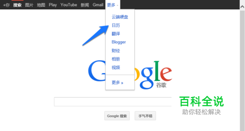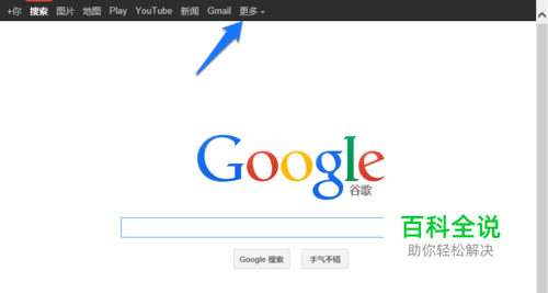 在浏览器中打开谷歌主页,点击顶部的 “更多”选项,如图所示