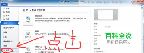点击菜单栏的唯一一个菜单栏选项文件,然后在下面找到“选项”