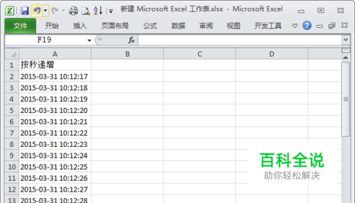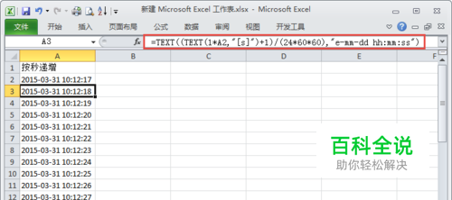 如下图所示,A2单元格为一个日期时间,现在希望以秒递增时间。