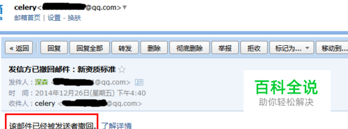 第六, 在对方收到你的邮件中,就只能看到邮件的主题,而没有邮件的内容。而 你会收到成功的撤回邮件成功的通知。