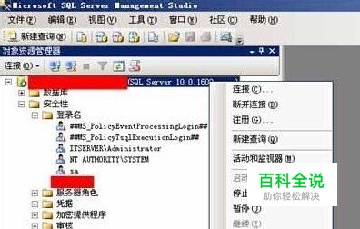 展开“安全性”->“登录名”->“sa”,右键选择“属性”。