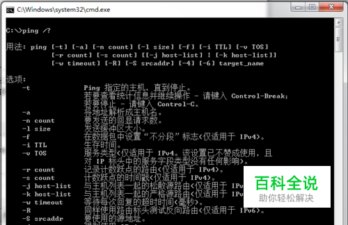 输入ping /? 查看ping基本用法