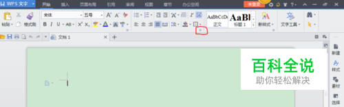 启动“WPS文字”程序,在功能区里点击选择第二个“小斜箭头”。(如图所示)