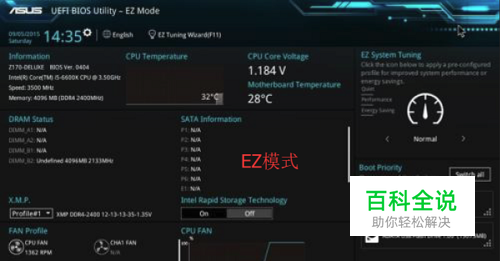 一.选择主板模式 开机后系统运行,等出现ASUS的标志时按F2或者DEL进入BIOS的设定。首先进入眼帘的是EZ模式,这也是华硕BIOS的默认模式,然后按F7可以进入高级模式界面,再按一次F7又可以返回EZ模式。
