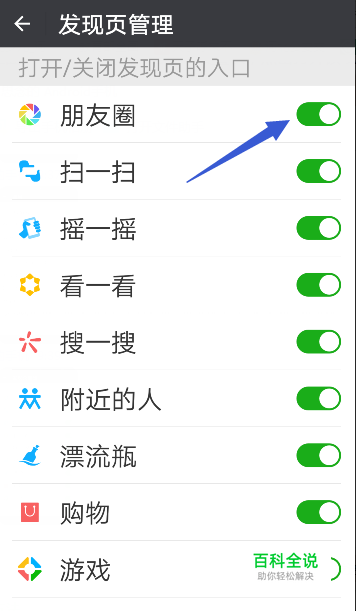在发现页管理设置项里,把朋友圈一项打开就行了。再次回到微信界面,你就会看到朋友圈又能看到了!