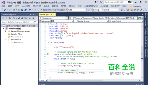 1>d:\personal\documents\visual studio 2013\projects\windows 编程\windows 编程\source.cpp(42): error C4996: 'strtok': This function or variable may be unsafe. Consider using strtok_s instead. To disable deprecation, use _CRT_SECURE_NO_WARNINGS. See online help for details.