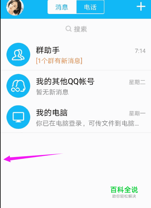 首先登陆手机QQ,登陆上后,用手指往左边一扒,就会进入设置的页面,如图所示。
