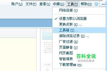 看到浏览器窗口顶部的工具栏,点击工具,选择“工具”,然后选择“工具箱”