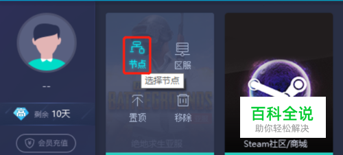 2、点击左侧“我的加速”,将鼠标移至刚刚添加的游戏图标上,就可以看到节点的操作选项,点击进去。