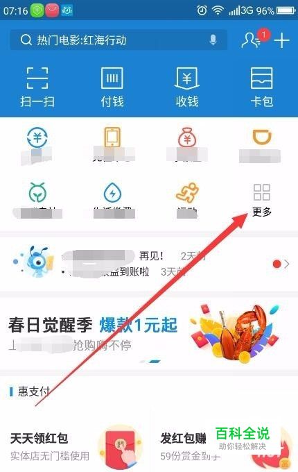 首先,在手机上打开并登录上支付宝界面,找到“更多”按钮点击进入。