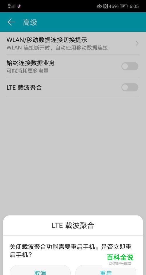 华为手机可以关闭LTE载波聚合功能,关闭后需要重新启动手机。