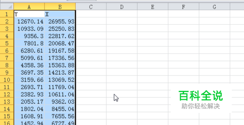 首先要准备好两组数据做为x和y,这组数据在可以简单感觉一下是否具有线性关系 将准备好的数据放入excel表格里面