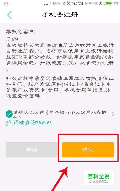 然后跳转到”手机号注册“协议书界面,在这里点击”确认“按钮就行了。