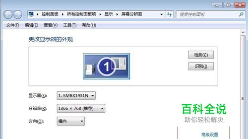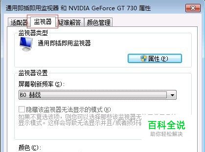 首先我们右键桌面,打开‘’屏幕分辨率‘’打开‘’高级设置‘’选择监视器