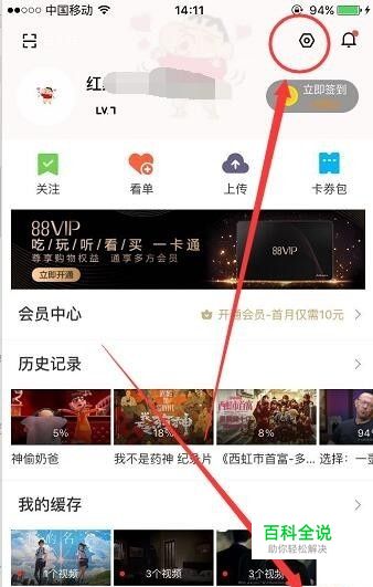 首先打开手机优酷APP,点开 我的页面,然后点开右上角的设置功能,如图