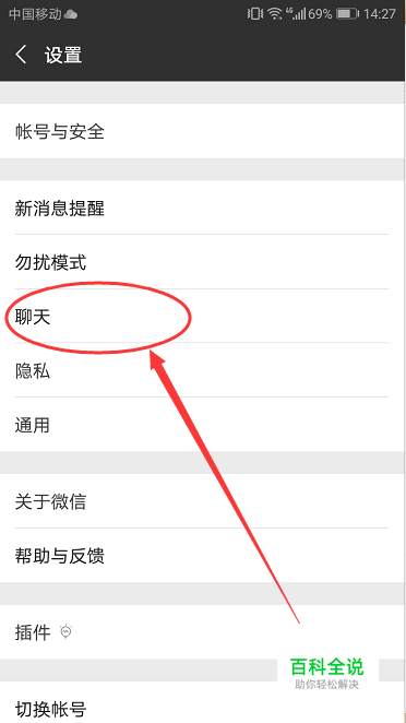 然后打开设置页面,在页面中间有个 聊天,如下图