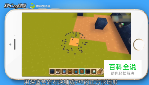 用深蓝色岩石块铺成7*7的正方形地形,用复制方块快速完成。