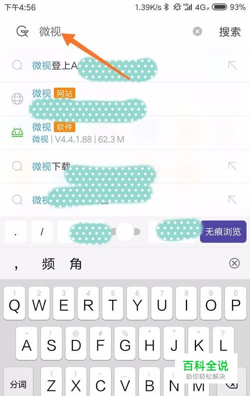首先,我们使用浏览器,用浏览器搜索微视,既可以出现下载页面,下载最好使用WiFi下载,如下图所示