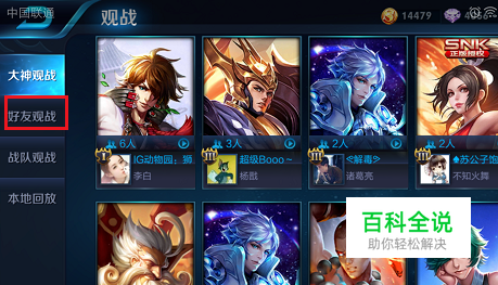 第二步进去之后,默认的是大神观战,选择好友观战,看下图