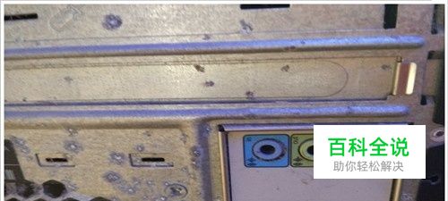 步骤二:组装完后可以知道台式电脑的主机上面有如图三个孔,分别是蓝色、绿色和红色。找到中间绿色的输出声道,这就是音频线的一端所要插入的一端。