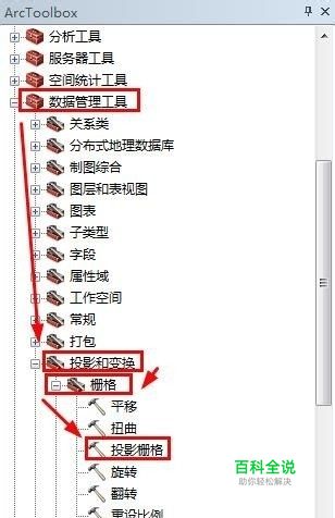 在ArcToolBox中,选择“数据管理工具”—“投影和变换”—“栅格”—“投影栅格”,操作过程如图2。