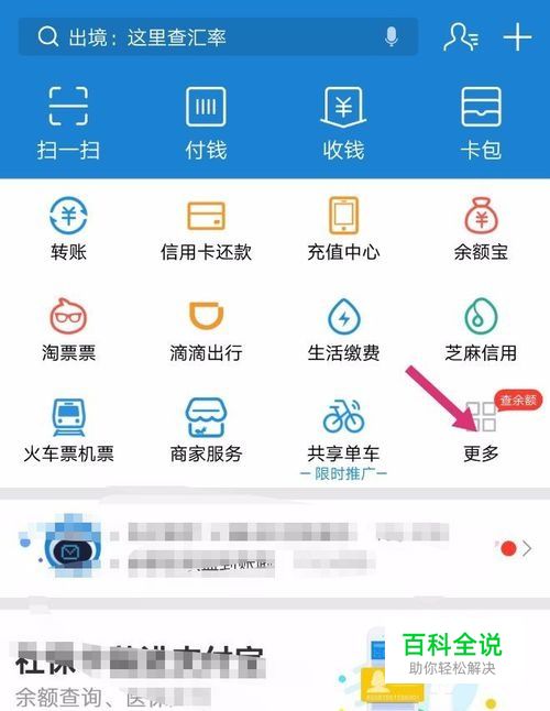 打开支付宝后,点击“更多”按钮进入。