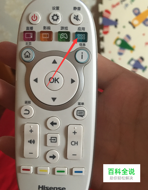 首先,通过遥控板打开电视机,打开后,按一下遥控板上的应用按钮,进入到应用界面。