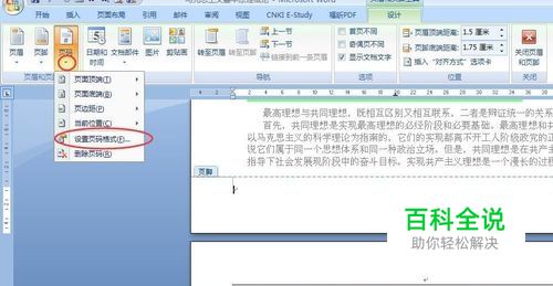 第三步,插入当前页码,选择【页码】-【设置当前页】,设置完之后就会出现数字了,并且每一页都有。