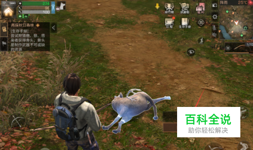成功击杀野兽后来到野兽的边上,接着再【搜索】野兽,通过搜索玩家就能获得骨头了。