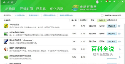 2、如需深度禁用开机启动项,可以借助360安全位置或者金山位置的系统优化功能,里面有更为全面的开机启动项优化操作。