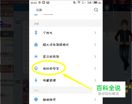 魅族手机root设置步骤二:进入魅蓝手机设置功能以后,用户找到并且点击“指纹和安全”功能。