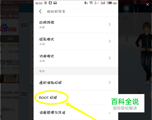 魅族手机root设置步骤三:进入手机的“指纹和安全”功能以后,找到并且点击“root权限”功能。