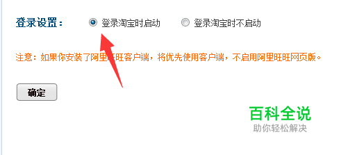 在旺旺设置界面,将 【登录淘宝时】点击勾选,然后点击确定