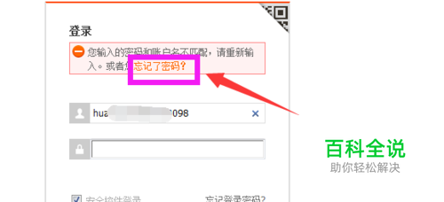 输入的密码不正确,就会提示:您输入的密码和帐户名不匹配,请重新输入。如图可以点击“忘记了密码?”。