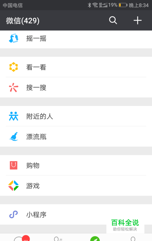 打开微信,在发现页面点击小程序