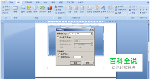 4、弹出【页码格式】窗口,选择【页码编号】--【起始页码】从0开始,确定。 此时,封面没有页码,目录开始有页码,页码从1开始;完成