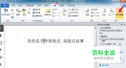 创建一个word文档 并 启用限制编辑功能如图