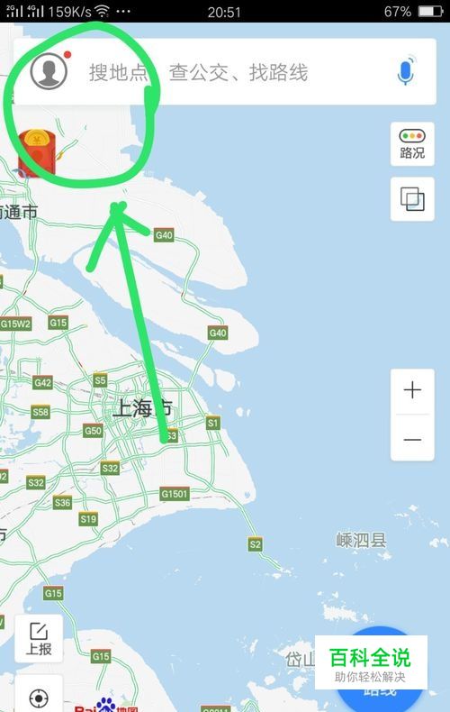 首先,打开手机,点击百度地图APP图标,进入软件首页,点击左上角 头像图标