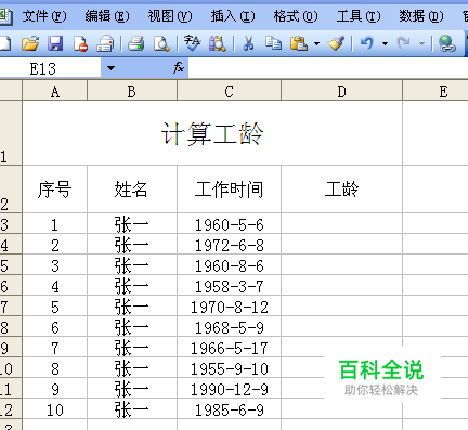 在YERA()的括号中输入”工作时间”所对应的单元格,也可以用直接选择。