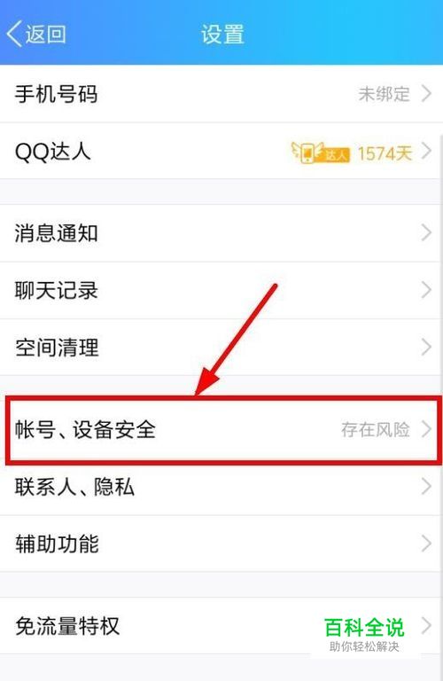 在设置里找到账号、设备安全点击进入。
