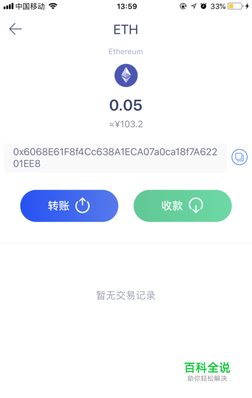 以ETH为例 在“资产”页,点击ETH,进入ETH的“币种详情页”。点击“收款”,进入“ETH收款”页。