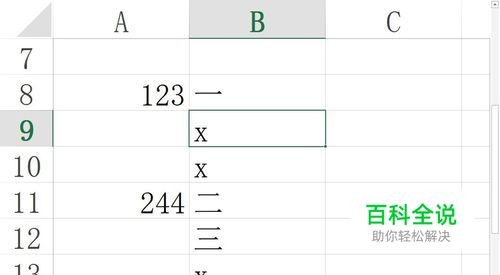 然后在a9单元格内输入公式=b9。并按下ctrl+enter确认。如图所示: