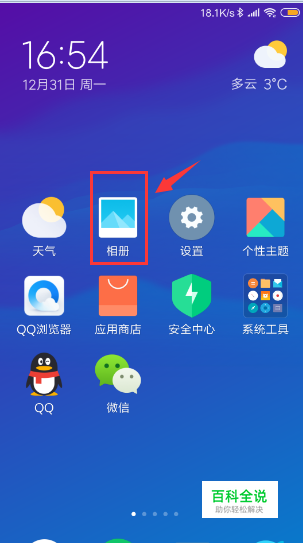 在手机桌面上找到相册的桌面图标,点击打开。