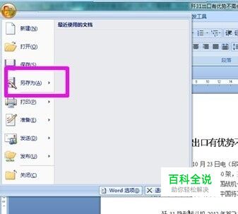 打开这个word文件后,选择office菜单下面的另存为菜单 ,如图;