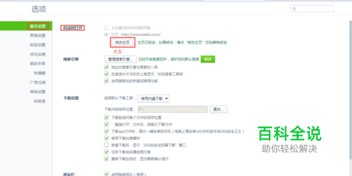 基本选项,启动时打开:点击 修改主页 。